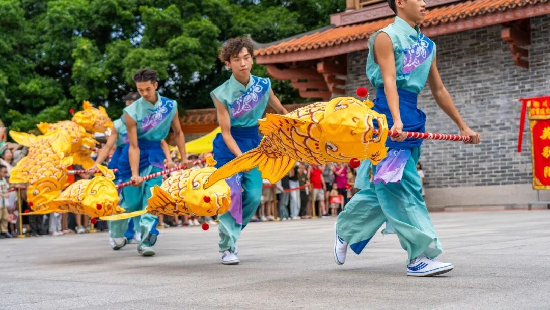 隨后,瑞獅助興,鯉魚躍龍門等潮州風俗項目輪流演出。由扮演者強健身姿所展示出的氣力與美感,鼓舞著現場每一顆心。
