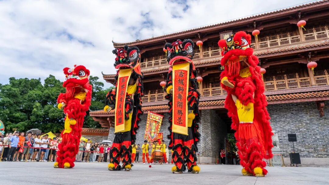 緊接著,龍獅扮演撲滅了不雅眾的熱忱,顏色艷麗的龍獅在舞者的揮舞下繪聲繪色,高漲騰躍,象征著喜慶和吉利。現場的游客紛紜拿出手機記載下這一衝動人心的時辰,排場熱烈不凡。