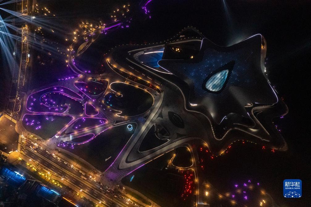 這是10月16日晚拍攝的2互動裝置023成都世界科幻大會主場館——成都展覽策劃科幻館(無人經典大圖機照片)。
